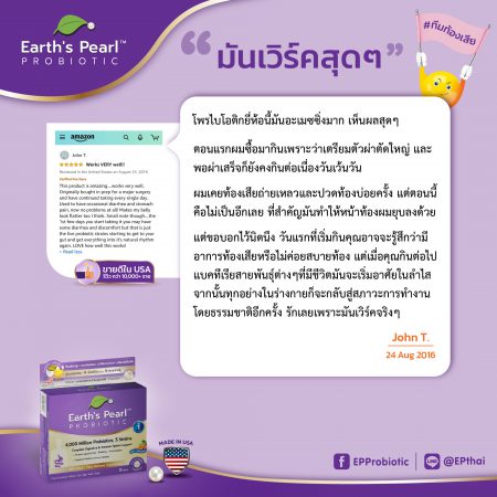 | Probi Inc. (บริษัท โพรบิ อิงค์ สหรัฐอเมริกา) คือผู้ผลิตผลิตภัณฑ์ Earth’s Pearl โพรไบโอติก โดยเป็นบริษัทวิจัยและพัฒนาโพรไบโอติกมาตั้งแต่ทศวรรษ 1980 | |