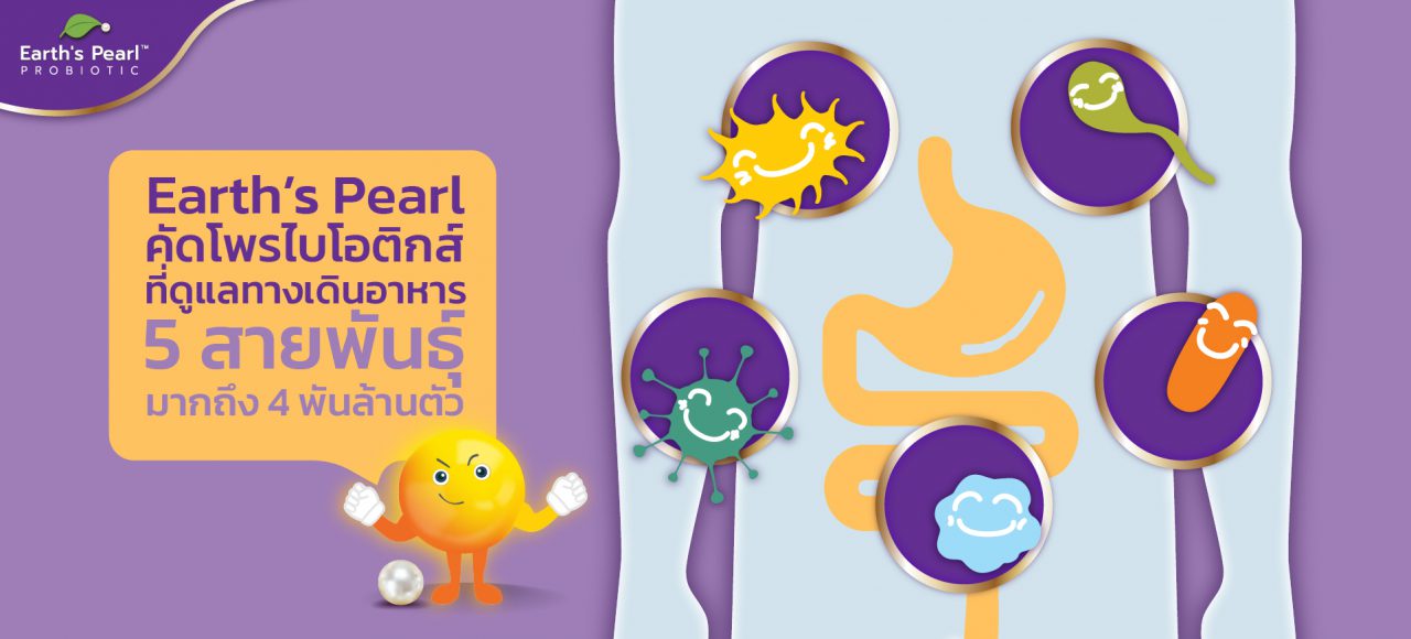 เนื่องจากในลำไส้เรามี probiotics หลากหลายชนิดอาศัยอยู่ แต่ละชนิดจะมีหน้าที่เฉพาะของตัวเองทั้งที่คล้ายคลึง หรือแตกต่างกัน ดังนั้น การจะสร้างสมดุลให้ลำไส้ และร่างกายได้ จึงจำเป็นต้องได้รับ probiotics ที่จำเป็นและทำงานสอดคล้องกันเสมือนที่ร่างกายปกติทำงานอยู่ ปกติในร่างกายเราหลักๆจะมีโพรไบโอติก 2 กลุ่มที่สำคัญคือ กลุ่มแลคโตบาซิลลัส ซึ่งเป็นจุลินทรีย์ที่อาศัยอยู่ในระบบย่อยอาหาร ระบบทางเดินปัสสาวะ และอวัยวะเพศ มี และกลุ่มบิฟิโดแบคทีเรียเป็นจุลินทรีย์ที่อยู่อาศัยในบริเวณลำไส้ใหญ่ เอิร์ธเพิร์ลได้รวมจุลินทรีย์ทั้งสองกลุ่มรวม 5 สายพันธุ์ไว้อย่างครบถ้วน ในปริมาณที่เหมาะสม